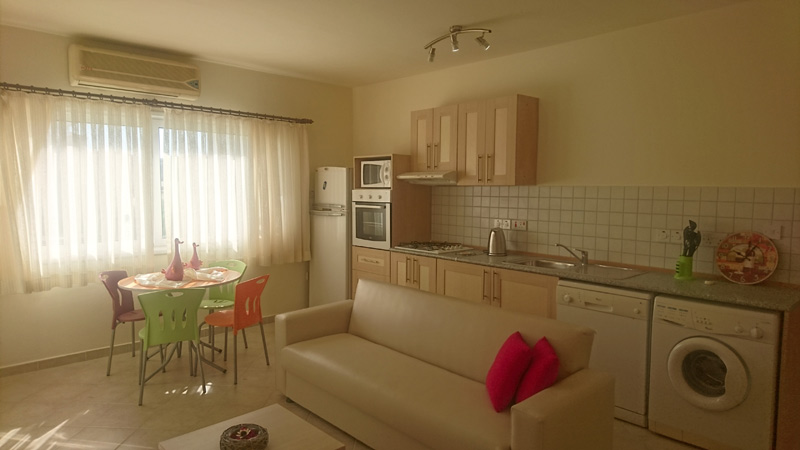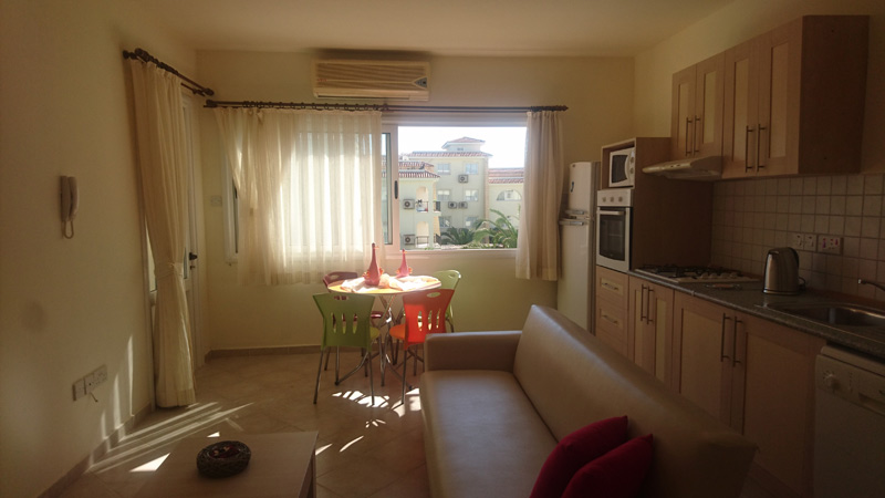 Апартаменты расположены в эксклюзивном курорте с видом на бассейны, полностью оборудованы кондиционерами. Апартаменты достаточно просторны, могут подойти для семьи из 4 человек, имеют открытого плана кухню и современный интерьер. Апартаменты с 2 спальями также расположены на первом этаже, имеют отдельную ванную комнату, а также жилую комнату и кухню, полностью оборудованную кухонным гарнитуром и бытовой техникой.